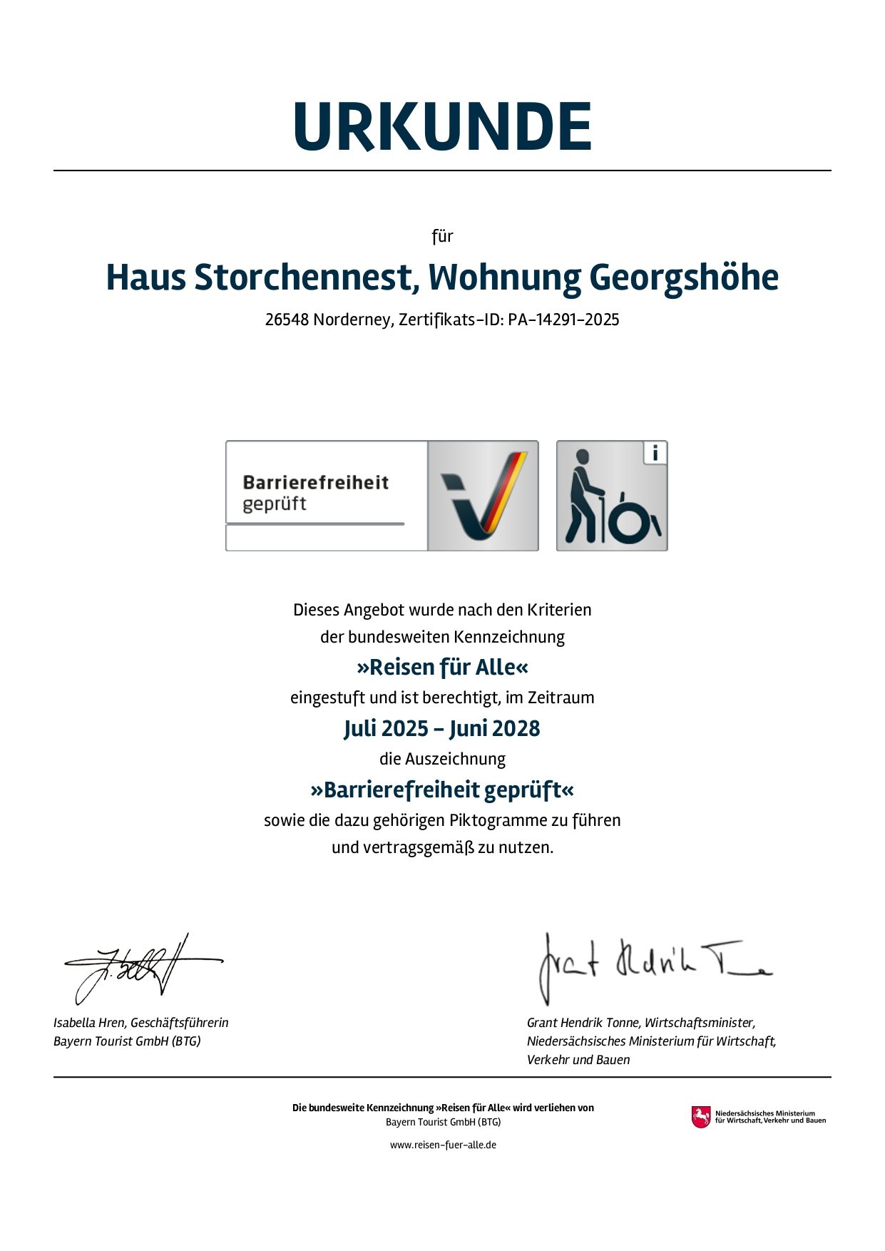 Barrierefreie Ferienwohnung Georgshöhe für bis zu 5 Personen