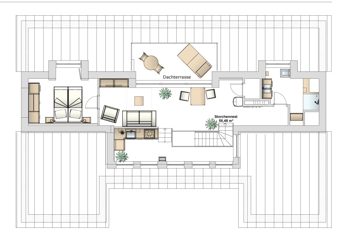 Der Name unseres Hauses spiegelt sich in der Ferienwohnung Storchennest wider. Über allen Ferienwohnungen thront in der 3. Etage das Storchennest in Form einer sehr gemütlichen Dachgeschosswohnung mit Klimaanlage. Sie ist der optimale Ausgangspunkt für Ihre Urlaubsaktivitäten auf Norderney, denn unser Haus liegt zentral nahe Kurplatz, Innenstadt und Weststrand. Alles ist binnen weniger Gehminuten erreicht. Wer die Insel lieber auf dem Rad erkundet findet vor unserem Haus einen geräumigen Fahrradparkplatz. Die Ferienwohnung Storchennest ist mit einer Klimaanlage und einem Gaskamin ausgestattet und für 2 Personen bestens geeignet.